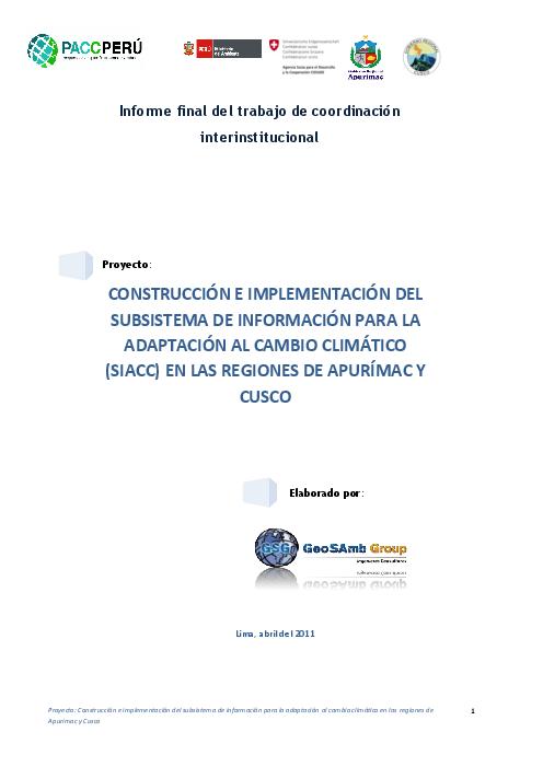 Construcción e implementación del subsistema de información para la adaptación al cambio climático (SIACC) en las regiones de Apurímac y Cusco