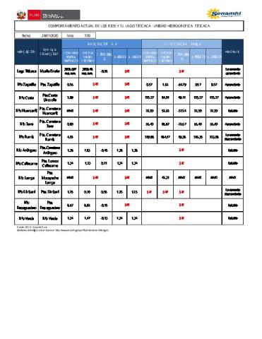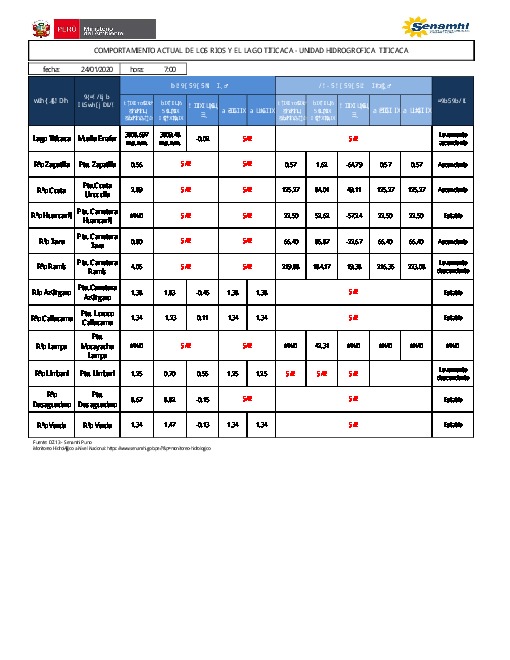 COMPORTAMIENTO ACTUAL DE LOS RÍOS Y EL LAGO TITICACA - UNIDAD HIDROGRÁFICA TITICACA