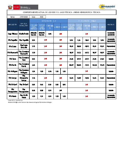 COMPORTAMIENTO ACTUAL DE LOS RÍOS Y EL LAGO TITICACA - UNIDAD HIDROGRÁFICA TITICACA
