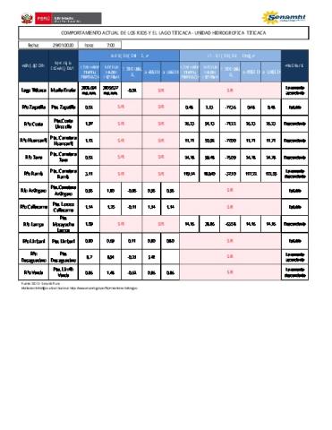 COMPORTAMIENTO ACTUAL DE LOS RÍOS Y EL LAGO TITICACA - UNIDAD HIDROGRÁFICA TITICACA