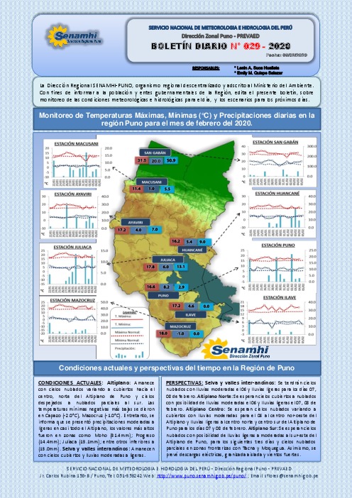 Condiciones actuales y perspectivas del tiempo en la Región de Puno.