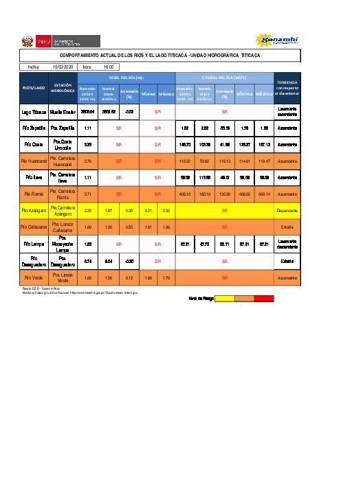 COMPORTAMIENTO ACTUAL DE LOS RÍOS Y EL LAGO TITICACA - UNIDAD HIDROGRÁFICA TITICACA