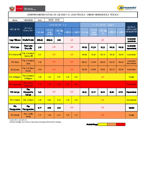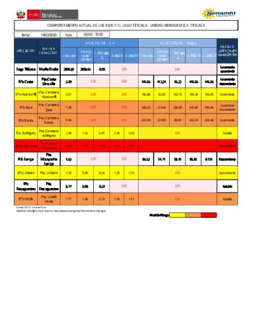 COMPORTAMIENTO ACTUAL DE LOS RÍOS Y EL LAGO TITICACA - UNIDAD HIDROGRÁFICA TITICACA