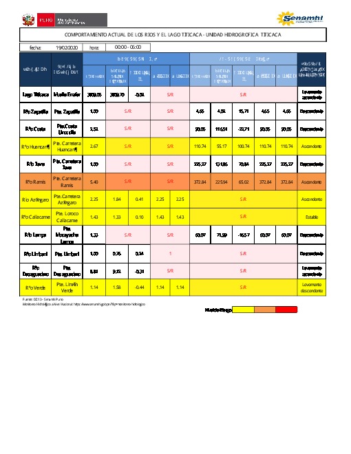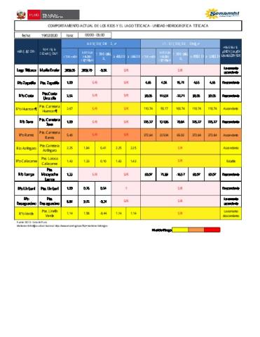 COMPORTAMIENTO ACTUAL DE LOS RÍOS Y EL LAGO TITICACA - UNIDAD HIDROGRÁFICA TITICACA