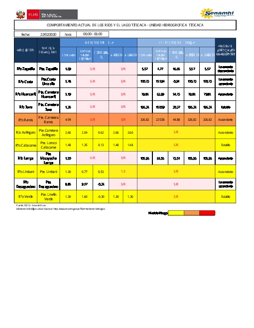COMPORTAMIENTO ACTUAL DE LOS RÍOS Y EL LAGO TITICACA - UNIDAD HIDROGRÁFICA TITICACA
