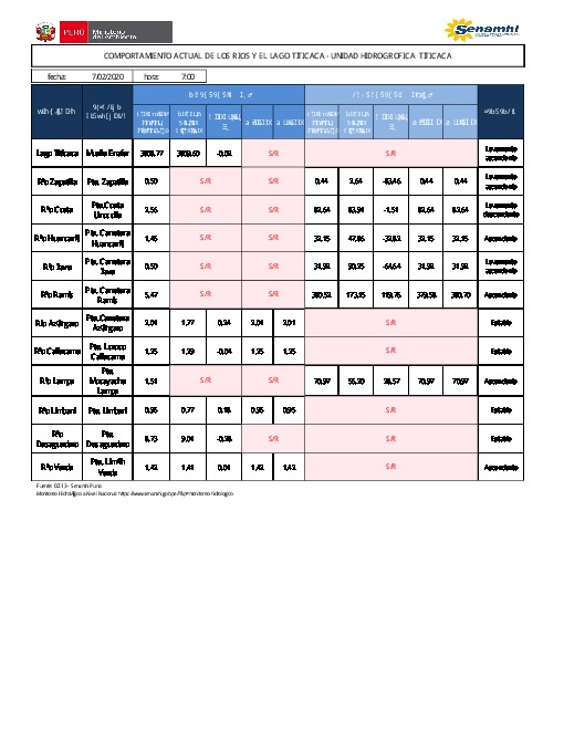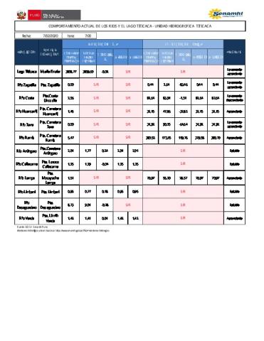 COMPORTAMIENTO ACTUAL DE LOS RÍOS Y EL LAGO TITICACA - UNIDAD HIDROGRÁFICA TITICACA