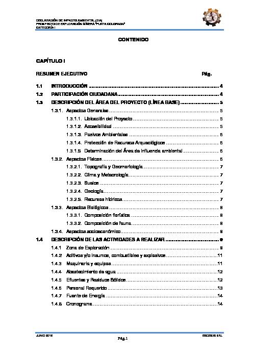 Declaración de Impacto Ambiental (DIA) del Proyecto de Exploración Minera “Punta Colorada” - Coayllo - Cañete