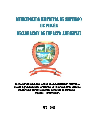 DECLARACION DE IMPACTO AMBIENTAL PROYECTO: “AMPLIACION DEL SERVICIO DE ENERGIA ELECTRICA MEDIANTE EL SISTEMA CONVENCIONALDE LAS COMUNIDADES DE TINTAYOCC BARRIO CIUDAD DE LAS AMÉRICAS Y TACMAYOCC DISTRITO SAN ANTONIO DE ANTAPARCO – ANGARAES – HUANCAVELICA”