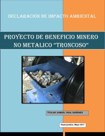 DECLARACIÓN DE IMPACTO AMBIENTAL PROYECTO DE BENEFICIO MINERO NO METÁLICO “TRONCOSO”