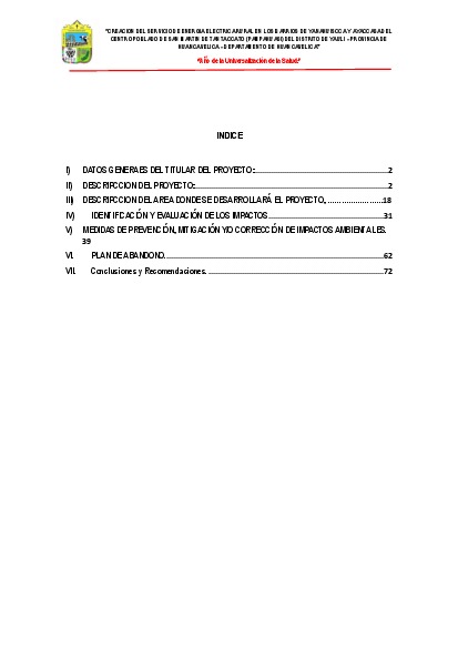 El presente documento tiene por objetivo el desarrollo del Expediente Técnico que comprende el Estudio Definitivo del proyecto “CREACION DEL SERVICIO DE ENERGIA ELECTRICA RURAL EN LOS BARRIOS DE YANAHUISCCA Y AYACCASA DEL CENTRO POBLADO DE SAN MARTIN DE TANTACCATO (PAMPAHUASI) DEL DISTRITO DE YAULI – PROVINCIA DE HUANCAVELICA – DEPARTAMENTO DE HUANCAVELICA”-SNIP N° 2427197, en el cual se describen sus alcances, principales características de su equipamiento, costos y criterios utilizados en su diseño.
