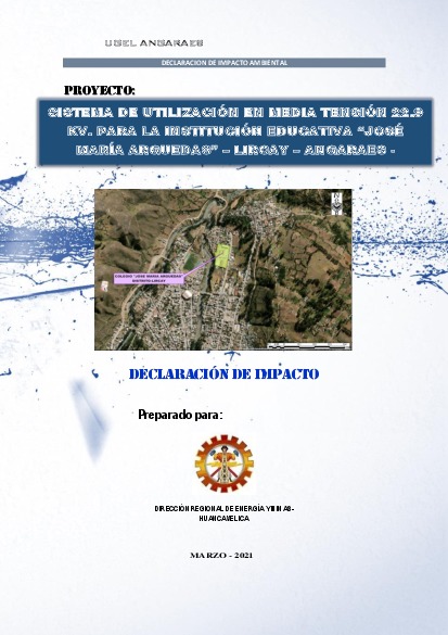 DECLARACIÓN DE IMPACTO AMBIENTAL PROYECTO SISTEMA DE UTILIZACIÓN EN MEDIA TENSIÓN 229 KV. PARA LA INSTITUCIÓN EDUCATIVA “JOSÉ MARÍA ARGUEDAS” – LIRCAY – ANGARAES – HUANCAVELICA