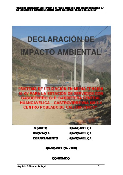 DECLARACIÓN DE IMPACTO AMBIENTAL PROYECTO “SISTEMA DE UTLIZACIÓN EN MEDIA TENSIÓN 10 KV PARA LA ESTACIÓN DE SERVICIOS CON GASOCENTRO GLP, CARRETERA CENTRAL HUANCAVELICA – CASTROVIRREYNA KM 3.4 CENTRO POBLADO DE CALLQUI CHICO”