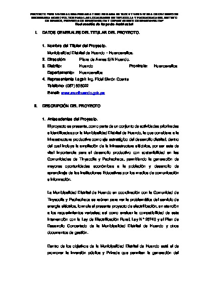 Declaración de impacto ambiental “Sub sistema línea primaria y red primaria en 13.2kv y sub sistema de distribución secundaria 440/220 voltios para las localidades de Tinyacclla y Pachachaca del distrito de huando, provincia de Hvca y departamento de Hvca