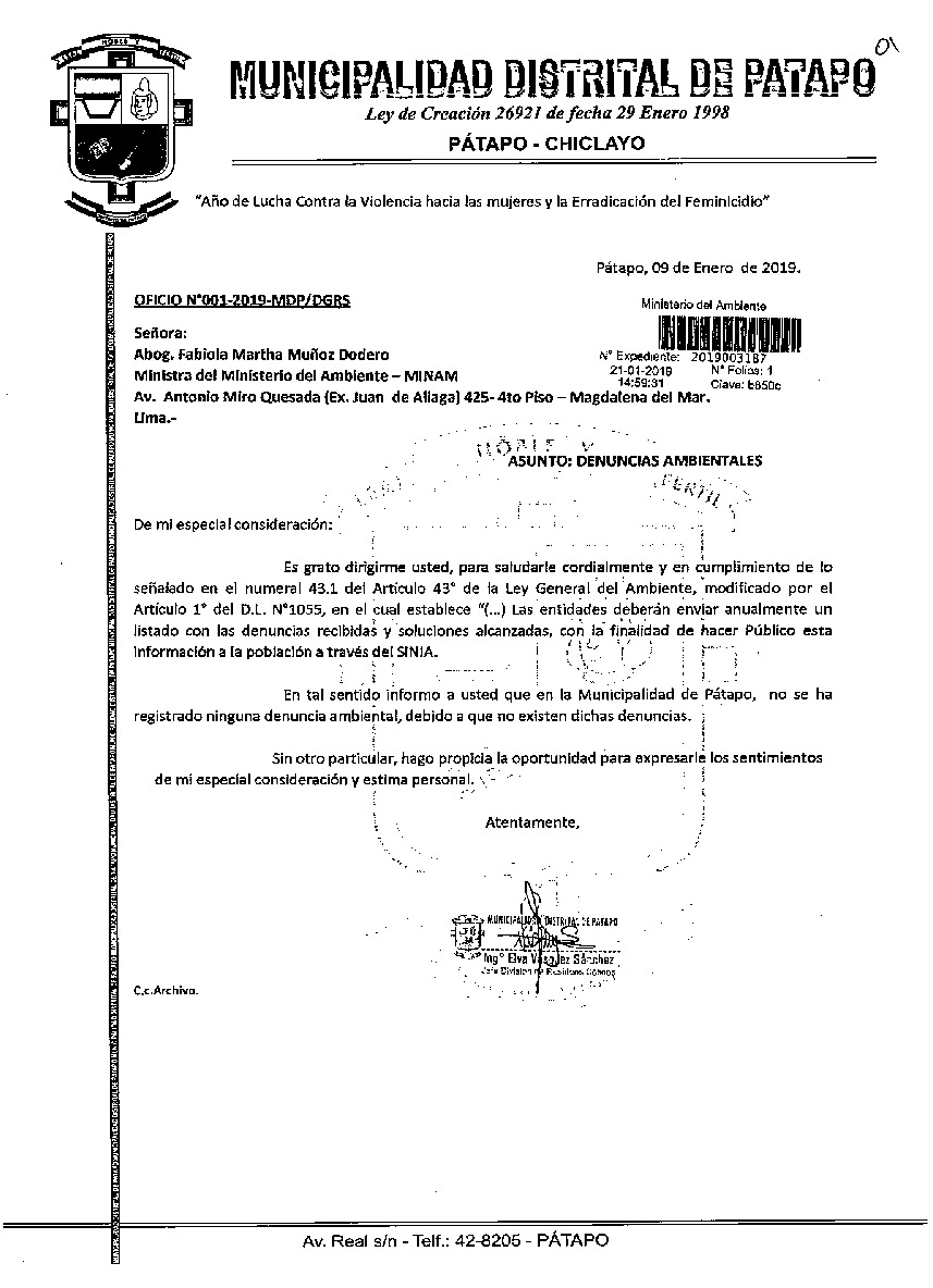 Denuncias Ambientales 2018 Municipalidad Distrital de Pátapo