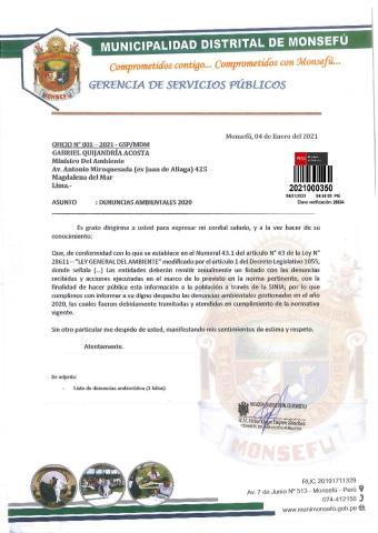 Denuncias ambientales 2020 de la Municipalidad Distrital de Monsefú