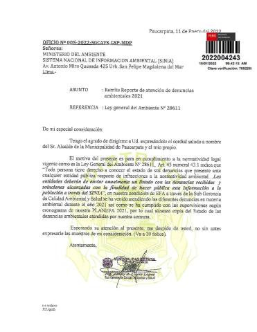 Denuncias ambientales 2021 de la Municipalidad Distrital de Paucarpata