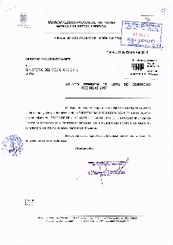 En cumplimiento de la Ley N° 28611 Art. 43, Inc. 43.1, que indica que "Las entidades públicas deberán enviar anualmente un listado con las denuncias recibidas y soluciones alcanzadas, con la finalidad de hacer pública esta información a la población a través del SINIA".