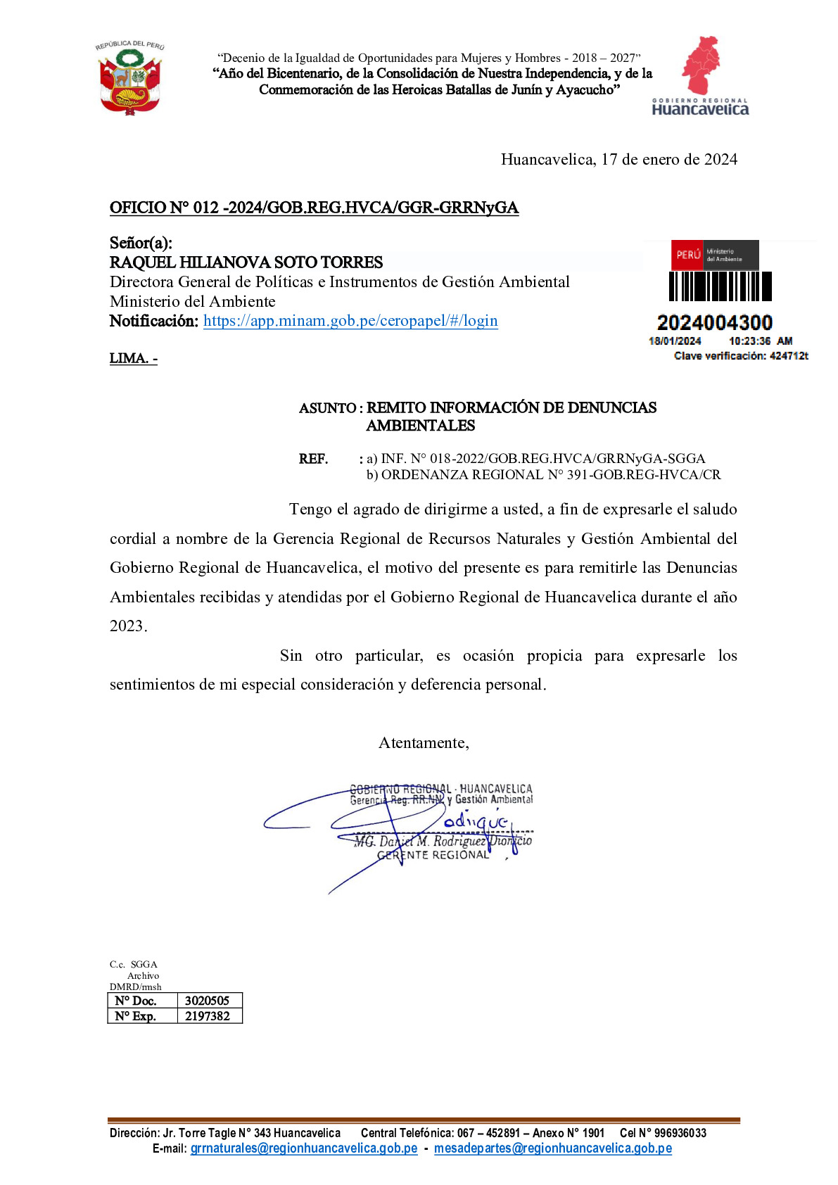 Denuncias Ambientales recibidas y atendidas por el Gobierno Regional de Huancavelica durante el año 2023