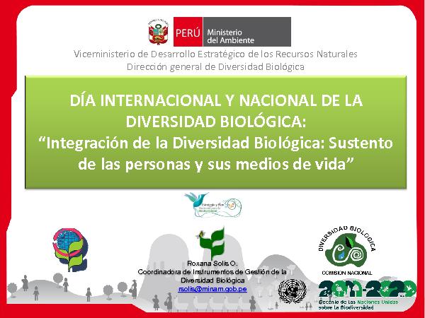 DÍA INTERNACIONAL Y NACIONAL DE LA DIVERSIDAD BIOLÓGICA: ?Integración de la Diversidad Biológica: Sustento de las personas y sus medios de vida?