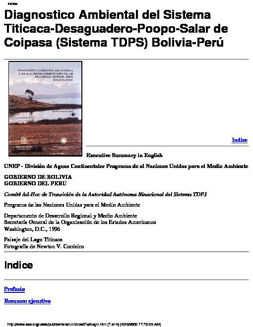 Diagnostico Ambiental del Sistema Titicaca-Desaguadero-Poopo-Salar de Coipasa (Sistema TDPS) Bolivia-Perú