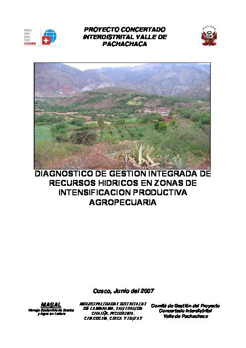Diagnostico de gestion integrada de recursos hidricos en zonas de intensificacion productiva agropecuaria