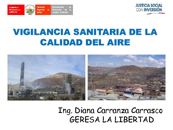 • Vigilancia de Calidad de Aire. Ing. Diana Carranza Carrasco, Dirección de Salud Ambiental, Gerencia Regional de Salud – La Libertad.
