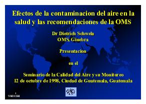 Presentación realizada por el Dr Dietrich Schwela, durante el Seminario de la Calidad del Aire y su Monitoreo, realizada el 12 de octubre de 1998 en la Ciudad de Guatemala, Guatemala.