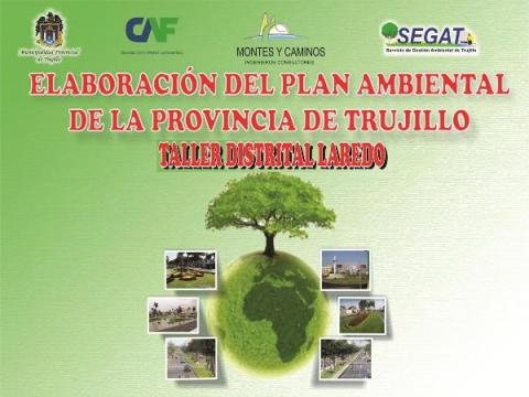 Presentación realizada por la Consultora Montes y Caminos, empresa encargada de elaborar el Plan Ambiental para la Provincia de Trujillo, en el Taller Distrital de Laredo en el local de la Municipalidad Distrital de Laredo, el 10 de mayo del 2012 , en donde se presentó lo que se va realizar para la elaboración del plan ambiental para la provincia de Trujillo 2012-2021, metodología y fase de diagnóstico considerados en el plan de trabajo de la consultora y ronda de trabajo sobre la problemática ambiental detectada en Laredo.