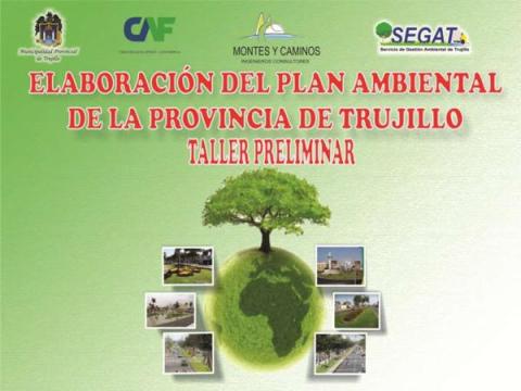 Presentación realizada por la Consultora Montes y Caminos, empresa encargada de elaborar el Plan Ambiental para la Provincia de Trujillo, en el I Taller Preliminar para la elaboración del Plan Ambiental de Trujillo, el 27 de Abril del 2012 . En esta reunión los puntos a tratar fue la Presentación del Objetivo y Metas del Plan Ambiental para la Provincia de Trujillo 2012-2021, Metodología y Productos Entregables considerados en Plan de Trabajo de la Consultora, y la Ronda de trabajo sobre la problemática ambiental actual y de actuaciones previstas por las diferentes instituciones participantes.