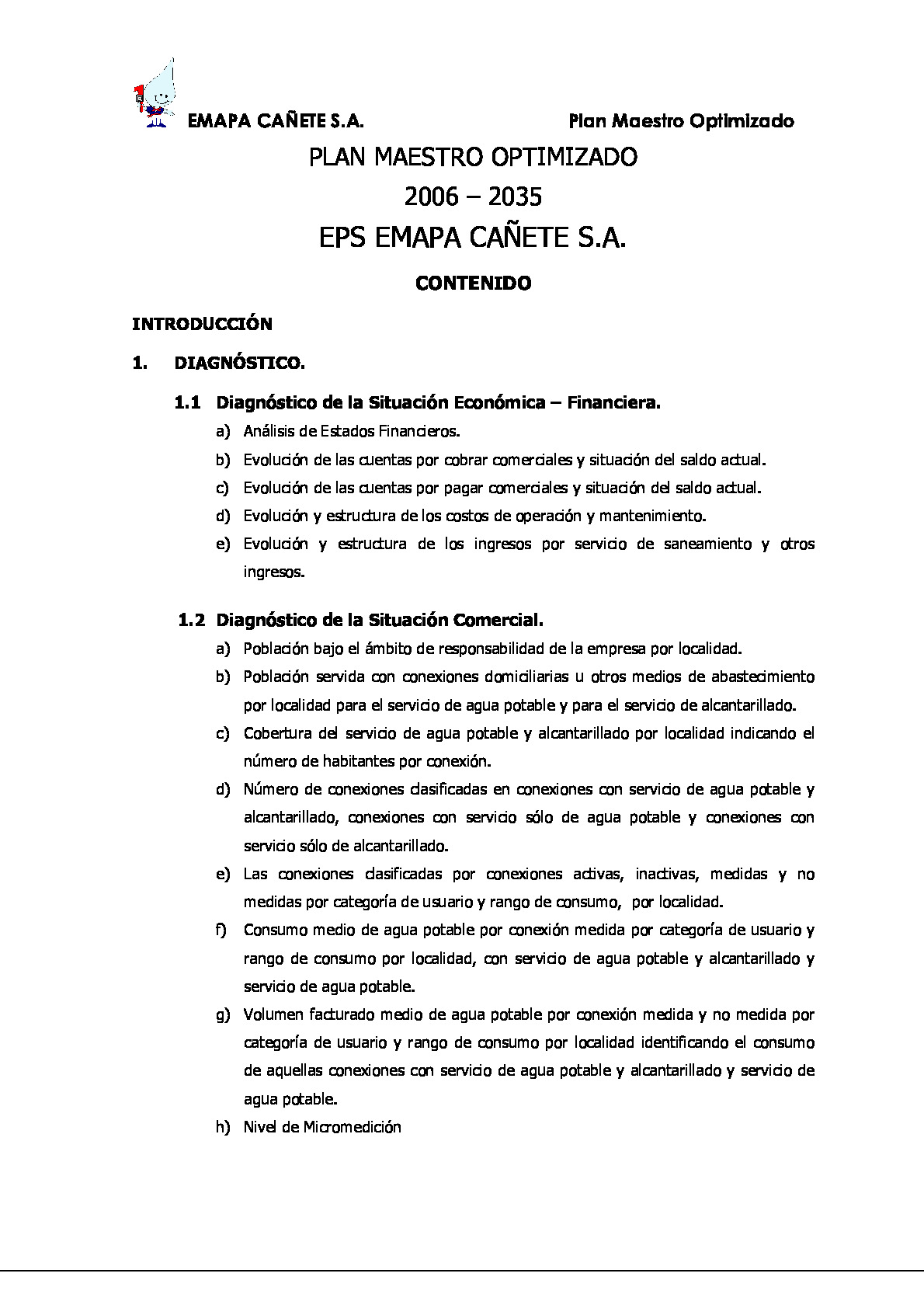 EMAPA Cañete S.A. Plan Maestro Optimizado 2006 - 2035