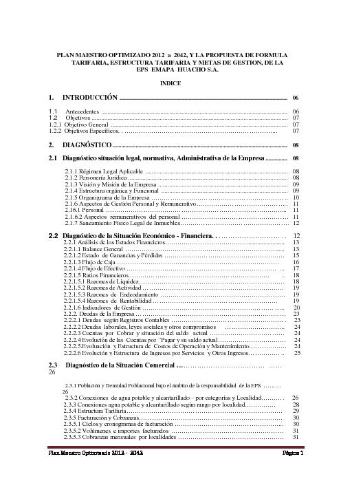 EMAPA Huacho S.A. PLAN MAESTRO OPTIMIZADO 2012 - 2042