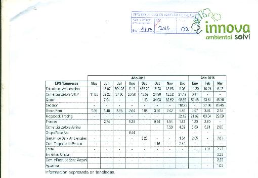 Empresas Prestadoras de Servicios de Residuos Sólidos(EPS) y empresas que disponen en el relleno sanitario Cumbre ubicado en Chicama de mayo 2015 a marzo del 2016