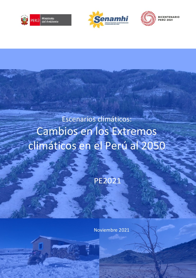 El presente estudio analiza los posibles cambios futuros de los extremos climáticos en el país usando como base la información de escenarios climáticos regionalizados de SENAMHI. La metodología consistió en estimar y analizar los cambios de los extremos climáticos en el periodo 2036-2065 relativo al periodo de referencia 1981-2005. Para ello se utilizaron como base información de tres modelos climáticos globales (HadGEM2-ES, MPI-ESM-LR y ACCES1-0) regionalizados con el modelo climático regional WRF y que además pasaron por un proceso de corrección estadística, obteniéndose información a una resolución espacial de 5 km.