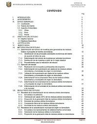 Este estudio de caracterización tiene por finalidad determinar la cantidad de residuos sólidos que genera una persona en un día, además de las características de ésta como peso, densidad, humedad. Así como crear una fuente de información actualizada que sirva como base para la elaboración de un Plan de Manejo de Residuos Sólidos acorde al Plan Integral Ambiental de los Residuos Sólidos y futuros Proyectos de Inversión Pública.