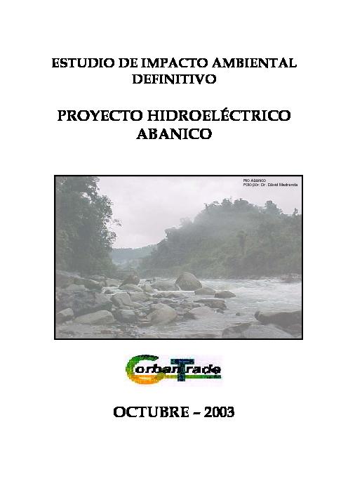ESTUDIO DE IMPACTO AMBIENTAL DEFINITIVO PROYECTO HIDROELÉCTRICO ABANICO CORBANTRADE S.A.