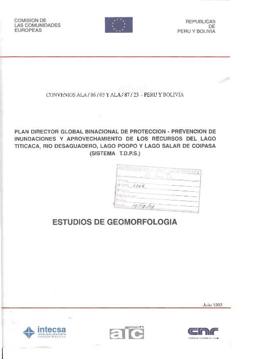 EStudios de Geomorfologia (PLAN DIRECTOR GLOBAL BINACIONAL DE PROTECCION • PREVENCION DE INUNDACIONES V APROVECHAMIENTO DE LOS RECURSOS DEL LAGO TITICACA, RIO DESAGUADERO, LAGO POOPO Y LAGO SALAR DE COIPASA - SISTEMA T.D.P.S.)