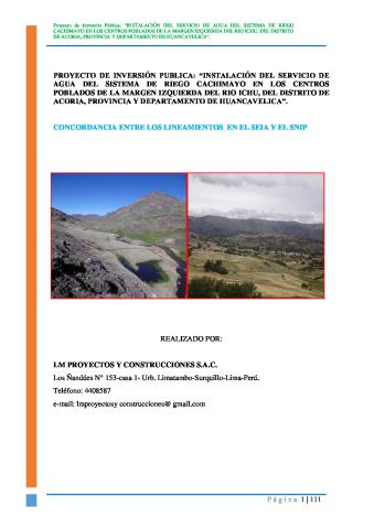 EVALUACION AMBIENTAL PRELIMINAR DEL PIP: “INSTALACIÓN DEL SERVICIO DE AGUA DEL SISTEMA DE RIEGO CACHIMAYO EN LOS CENTROS POBLADOS DE LA MARGEN IZQUIERDA DEL RIO ICHU, DEL DISTRITO DE ACORIA, PROVINCIA Y DEPARTAMENTO DE HUANCAVELICA”.