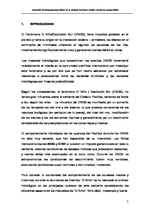 Evaluación del comportamiento hídrico de la vertiente del Océano Pacífico durante los eventos ENOS
