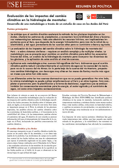 Evaluación de los impactos del cambio climático en la hidrología de montaña: Desarrollo de una metodología a través de un estudio de caso en los Andes del Perú
