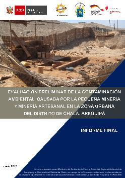 El presente informe resume los resultados de una evaluación preliminar de la contaminación ambiental causada por las actividades de la Pequeña Minería (PM) y Minería Artesanal (MA) en la zona urbana del distrito de Chala (Arequipa).
