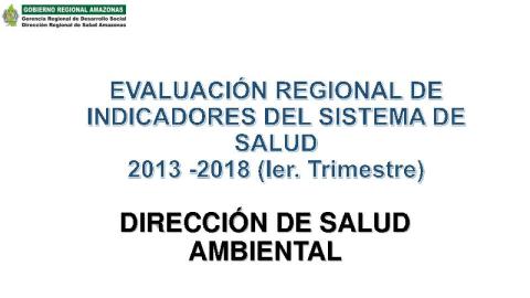 Información Estadistica acerca de la EVALUACIÓN REGIONAL DE INDICADORES DEL SISTEMA DE SALUD 2013 -2018 (1er. Trimestre), elaborado por la Dirección de Salud Ambiental de la Dirección Regional de Salud Amazonas- Mayo 2018