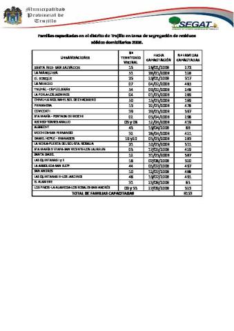 En el 2008, el Servicio de Gestión Ambiental de Trujillo logró capacitar a un total de 8153 familias sobre como segregar sus residuos.