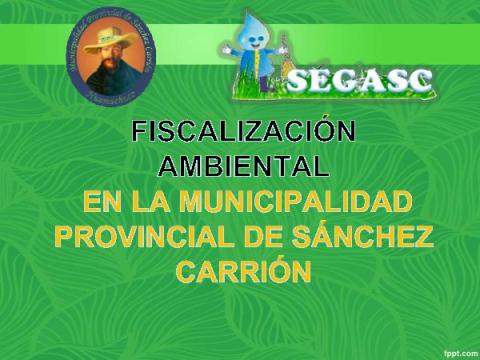 Esta presentación fue realizada por la Municipalidad Provincial de Sánchez Carrión en el Taller de “Fiscalización Ambiental, Logros y Avances”, en la región La Libertad, del 19 de Junio organizado por la Oficina Desconcentrada OEFA La Libertad en el Hotel El Gran Marqués.