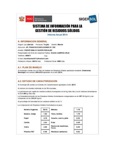 Formulario del Sistema de Información para la Gestión de Residuos Sólidos, SIGERSOL gestión 2014 del distrito de Moche, provincia de Trujillo, departamento La Libertad