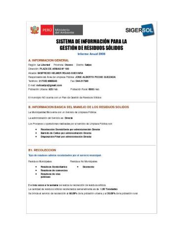 Formulario del Sistema de Información para la Gestión de Residuos Sólidos, SIGERSOL gestión 2008 del distrito de Salpo de la provincia de Otuzco, departamento La Libertad