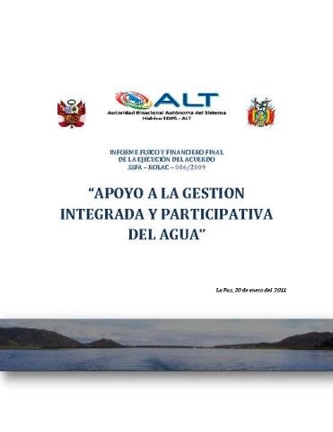 INFORME FISICO Y FINANCIERO FINAL DE LA EJECUCIÓN DEL ACUERDO SSFA – ROLAC – 006/2009