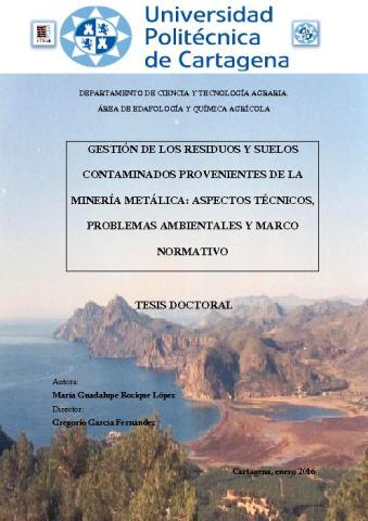 GESTIÓN DE LOS RESIDUOS Y SUELOS CONTAMINADOS PROVENIENTES DE LA MINERÍA METÁLICA: ASPECTOS TÉCNICOS, PROBLEMAS AMBIENTALES Y MARCO NORMATIVO