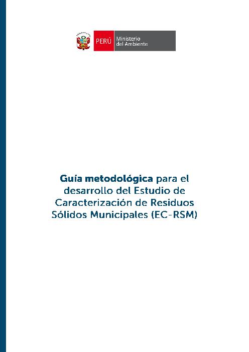Esta guía tiene por objetivo orientar el desarrollo de Estudios de Caracterización de Residuos Sólidos Municipales (EC-RSM) para el ámbito domiciliario y comercial mediante una serie de pautas metodológicas que describen en forma clara y sencilla los pasos a seguir para la obtención de las características de los residuos sólidos tales como: la generación per cápita, peso, volumen, densidad, humedad y composición física de residuos sólidos de origen domiciliario (viviendas) y no domiciliario (establecimientos comerciales, restaurantes, hoteles u hospedajes, mercados, instituciones públicas y privadas, instituciones educativas y limpieza de espacios públicos o barrido de calles).