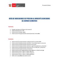 La presente Guía muestra de manera detallada el proposito, importancia y frecuencia de los parametros e indicadores de presion que inciden en el cambio climatico. Este es un documento de trabajo del MINAM.