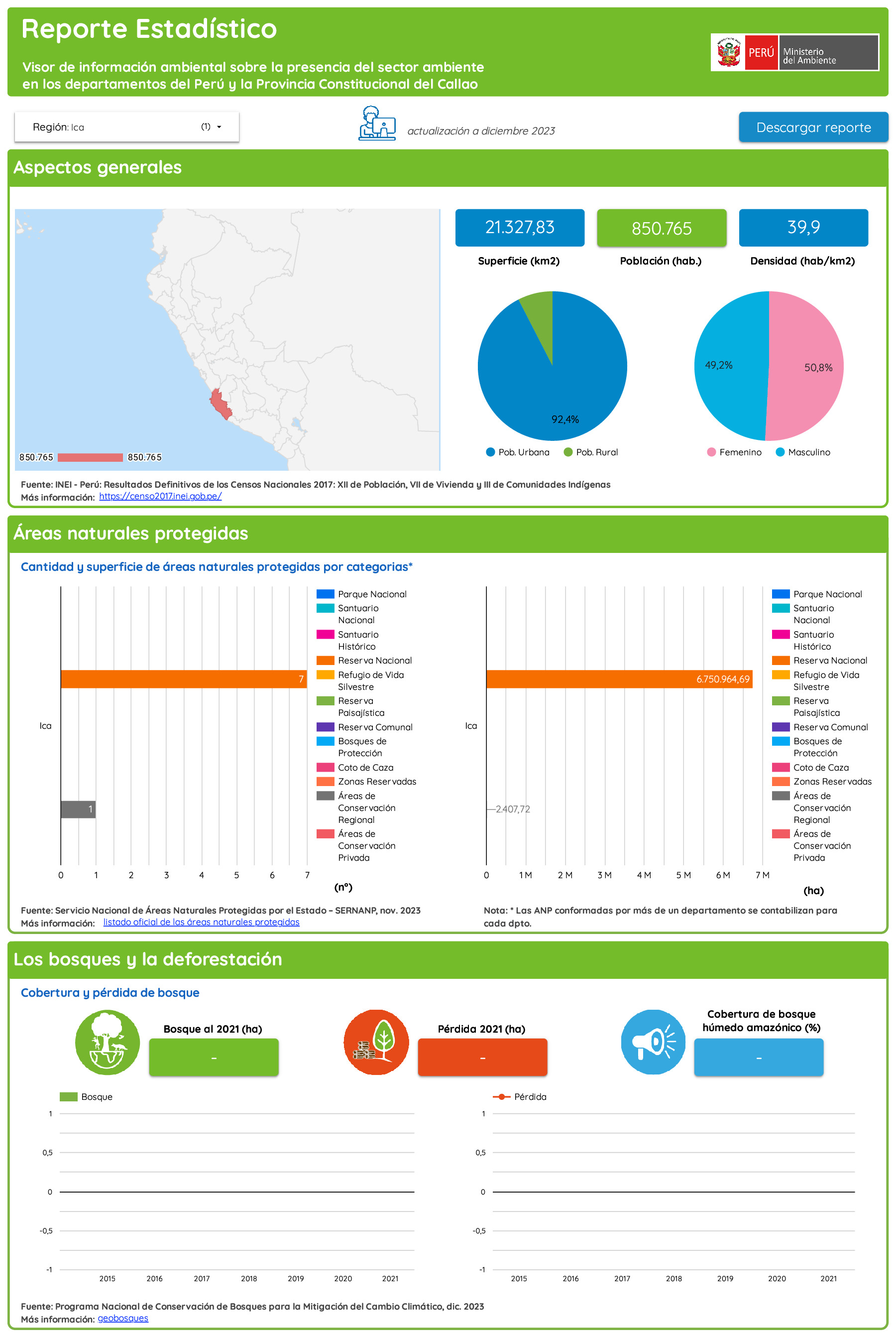 Ica, Reporte Estadístico Departamental, diciembre 2023